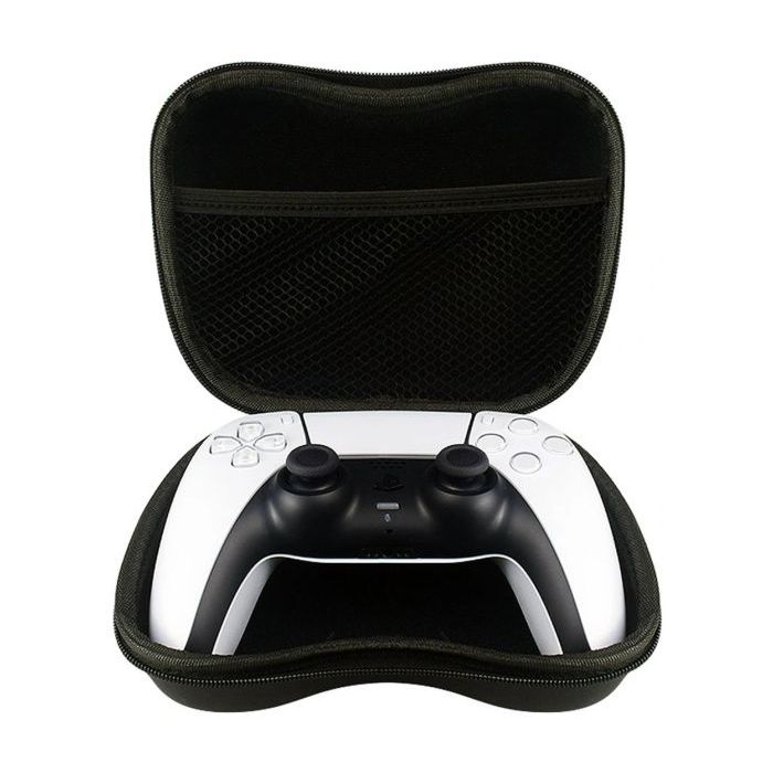Stevige hoes voor de PS5 controller, gemaakt van sterk kunststof. Beschermt effectief tegen beschadiging tijdens transport. De hoes is voorzien van een handige rits waarmee hij snel kan worden geopend. Binnenin is er een extra vak voor een USB-kabel voor het opladen van de pad. Het comfortabele handvat maakt het gemakkelijk te dragen.