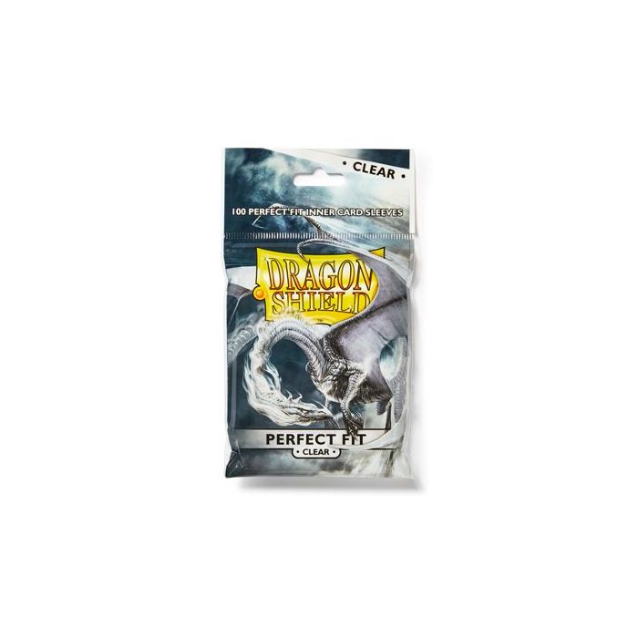 Standard-size Dragon Shield Perfect Fit sleeves (63x88mm) met origineel draken artwork. Deze Perfect Fit sleeves sluiten naadloos aan op de kaarten en passen daardoor ook nog eens in de standard-sized sleeves. Uiteraard PVC-vrij en beschikbaar in twee versies (transparant of smoke). Een pakje bevat 100 sleeves. Versie: transparant.