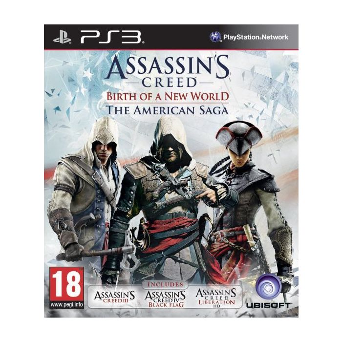 Assassin's Creed 'Birth of a New World' The American Saga is een exclusieve verzameling van de drie Assassin's Creed games die getuige zijn geweest van de geboorte van het moderne Amerika.