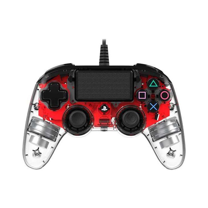 De Illuminated Wired Compact Controller van Nacon is misschien kleiner van formaat, maar z'n functionaliteiten zijn dat zeker niet! De controller heeft een touchpad, een 3,5mm stereo-headsetaansluiting en trilmotoren, waardoor je optimaal in je game zit. Het snoer van maar liefst 3 meter zorgt ervoor dat je tijdens het gamen alle vrijheid hebt die je je maar wensen kan. Deze compacte PS4 controller van Nacon ziet er bovendien supervet uit! De transparante behuizing wordt verlicht door rode LED-lampjes. En dat geeft deze Nacon controller een wel heel flitsend uiterlijk.