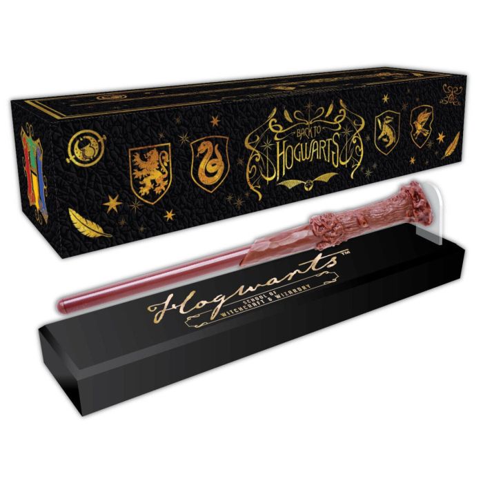 Een pen in de vorm van Harry's toverstaf die zweeft met magneten boven een plastic basis. Een prachtig cadeau voor elke fan van de magische wereld van J.K. Rowling!