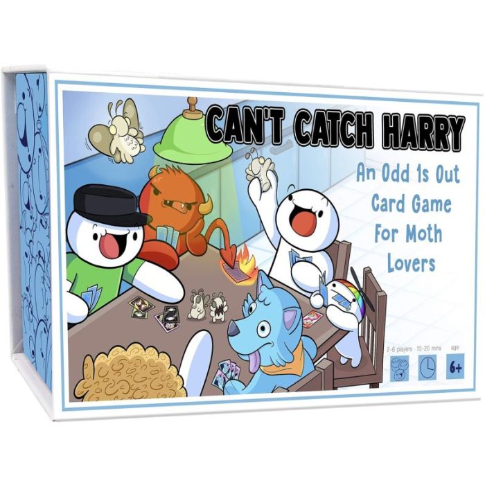 Can't Catch Harry is a fast paced card game that comes with collectors cards from the popular Youtube channel The Odd 1s Out. The deck is made of characters your friends and family will recognize. You'll spend many game nights trying to catch Harry before he and his friends are pulled into the lull of the Lamp (bug zapper).