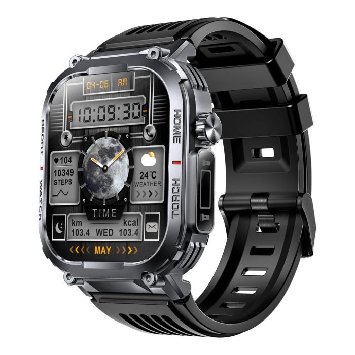 Het robuuste ontwerp straalt kracht uit en benadrukt jouw unieke stijl. Deze smartwatch is niet alleen functioneel, maar ook een echt statement piece om je pols.