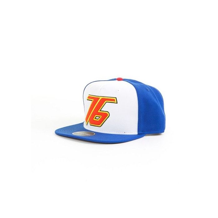 Laat jouw liefde voor Overwatch zien met deze Soldier 76 Snapback! De pet is gemaakt van blauwe en witte stof en is te verstellen aan de achterkant. Op de voorkant is de print geborduurd.