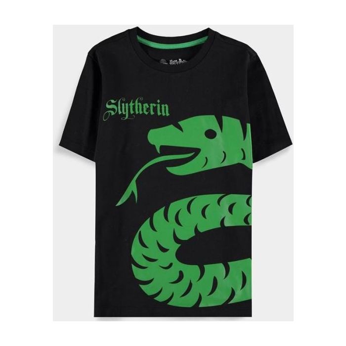 Voor alle jonge Harry Potter fans is er nu dit leuke Slytherin shirt van Bioworld! Bedrukt met het huisembleem en de engelse Naam van Zwadderich, is dit een geweldig kledingstuk voor kinderen die fan zijn van de Harry Potter franchise!