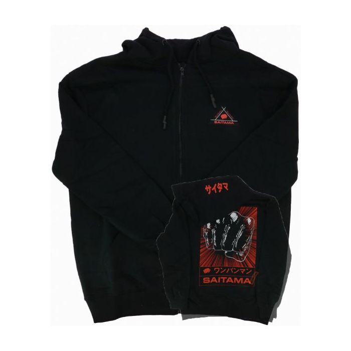 Stoere hoodie in One Punch Man thema van Difuzed! Deze zwarte hoodie bevat een opdruk van de tekst "Saitama" met logo op de voorkant & een groot Saitama logo op de achterkant!