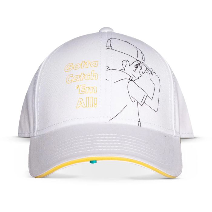 Blijf deze zomer koel met deze frisse en trendy Pokémon-pet. Gemaakt van eersteklas wit katoenen materiaal, zit je comfortabel terwijl je je van je Pokémon-fanatieke kant laat zien. Gele kleurcontrastelementen zijn geïnspireerd op Pikachu en Ash, waaronder de high-definition print van de beroemde catchphrase "Gotta catch 'em all!", een lijntekening van Ash en een ander levendig detail dat uit de onderrand piept. Open aan de achterkant en verstelbaar voor een optimale en comfortabele pasvorm.