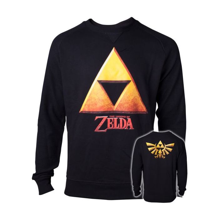 Leuke sweater van Bioworld in The Legend of Zelda thema. Deze sweater heeft een opdruk van de Golden Triforce op de voorkant met de Golden Hyrule Crest op de achterkant.