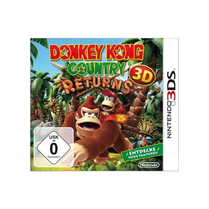 Im tiefsten Dschungel beginnt die wilde Verfolgungsjagd nach raffinierten Bananendieben. Schlage dich mit Donkey Kong und seinem Freund Diddy Kong durch finstere Höhlen, über feuerspeiende Vulkane, schwinge dich an Lianen durch den Urwald oder lass dich von Kanonenfässern durch die Luft katapultieren. Mit rasantem Springen, Jagen und Kämpfen ist es aber noch lange nicht getan. Köpfchen und Geschicklichkeit sind gefragt, wenn in geheimen Bonusräumen, die in jedem Level auftauchen, Gegenstände aufzuspüren und Rätsel zu knacken sind. Für affenartigen Spielspaß sorgt neben den vielen traditionellen Jump'n'Run Elementen der Donkey Kong Country Serie auch der Einsatz von Spezialfähigkeiten um das Abenteuer zu meistern. Und wenn es allzu brenzlig zu geht, setzen die Affen auf Teamwork: Im kooperativen 2-Spieler-Modus nimmt Donkey Kong seinen Kumpel Huckepack - so können auch unterschiedlich erfahrene Spieler das rasante Dschungelabenteuer meistern. Wer sich noch mehr austoben möchte, kann im Spiel-auf-Zeit-Modus seinen Adrenalinspiegel ordentlich hochschrauben: Wenn das Rennen gegen die Uhr beginnt, solltest du das Level ratz-fatz meistern, um eine anständige Goldmedaille mit nach Hause zu schleppen. Donkey Kong Country Returns 3D liefert sowohl neuen als auch erfahrenen Spielern und Nostalgikern ein rasantes Abenteuer in einem tiefen, dreidimensionalen und schmackhaft leuchtenden Dschungel!