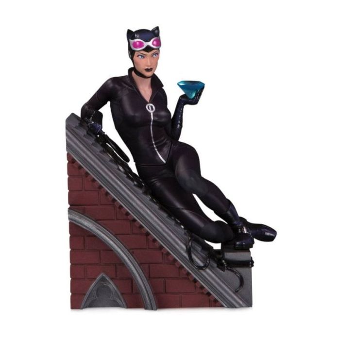 Although sometimes considered more of an anti-hero, Catwoman seems to be up to her usual thievery, as she rests upon a rooftop holding a freshly stolen diamond.