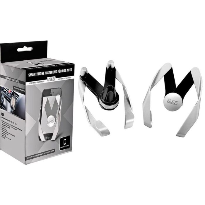 Met deze praktische universele autohouder heeft Eaxus een zeer speciale eigen ontwikkeling gecreëerd, die nog niet eerder op de markt is geweest. Overtuig uzelf van de voordelen van het uniek geperfectioneerde ontwerp, dat gemakkelijk kan worden bevestigd aan de ventilatielamellen in het interieur van uw voertuig. Op die manier hebt u uw smartphone altijd in het zicht en zonder enige beperking van het zicht, zoals bijvoorbeeld het geval zou zijn bij plaatsing op de voorruit. De bevestiging van de beugel geschiedt door middel van de rubberen pennen, die zich aan de achterzijde van het product bevinden.