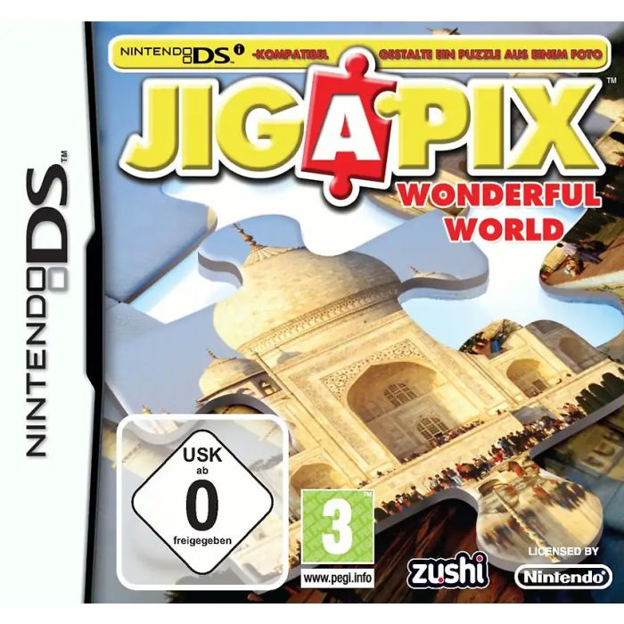 In Jigapix Wonderful World können Sie sich intensiv mit Puzzlespielen beschäftigen. Es gibt über achtzig verschiedene Puzzles zu lösen, die alle ein schönes Bild als Lösung ergeben. Das Spiel nutzt auch die Kamerafunktionen des DSi, da man ein selbst gemachtes Bild in ein zu lösendes Puzzle verwandeln kann.