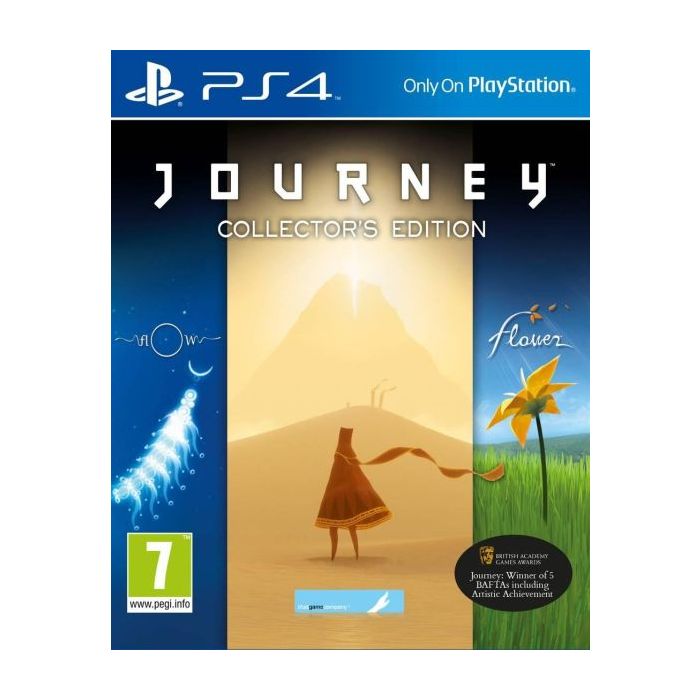 Drie unieke games, een fantastisch pakket dat is de Journey Collector's Edition. Vergeet de tijd met deze drie PlayStation 4-klassiekers en geniet van de talloze extra's. De wonderlijke onderwaterwereld van flOw, de ontspannende bloemenpracht van Flower en de hypnotiserende kleuren van Journey alle drie de games zorgen voor een magisch gevoel van verwondering. De betoverende, inventieve werelden lokken je met hun geheimen en laten het aan jouw fantasie over om hun dromerige landschappen vorm te geven. En het blijft niet bij de games alleen. Deze schitterende collectie bevat ook dynamische thema's, conceptillustraties, soundtracks, screenshots, trailers en interessante commentaren van de ontwikkelaars. Als leuke extra kun je ook aan de slag met de verrassende multiplayer-minigames Gravediggers, Duke War!! en Nostril Shot. Kenmerken: - Verken drie bejubelde klassiekers in een gunstig geprijsde bundel: Journey, Flower en flOw. - Leer meer over de games dankzij het gameplay-commentaar van de makers, en geniet van de originele soundtracks, de concept illustraties en screenshots van alle drie de games. - Duik dieper in het verhaal van de bekroonde game Journey met een 'achter de schermen'-documentaire van 30 minuten. - Neem het op tegen je vrienden in drie verslavende bonus-minigames: Gravediggers, Duke War!! en Nostril Shot. - Verfraai je XMB-menu met dynamische thema's en achtergronden van thatgamecompany.