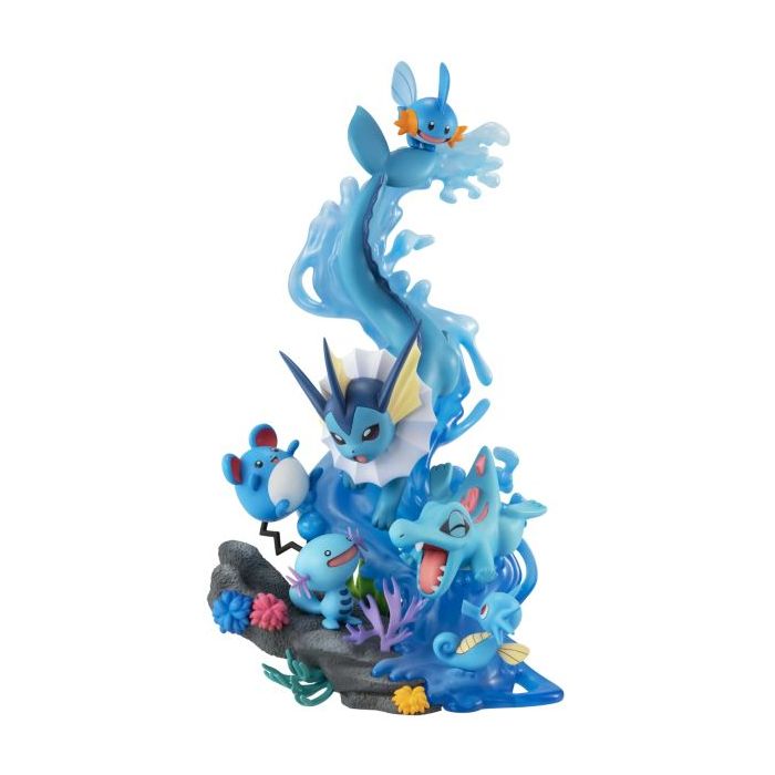 De nieuwste toevoeging aan de G.E.M.EX: Pokémon-serie, die de banden tussen Pokémon laat zien, is een verzameling van verschillende water-Pokémon, waaronder Wooper, Vaporeon, Marill, Mudkip, Totodile en Horsea!
