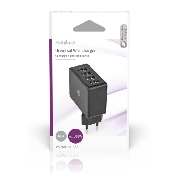 Nedis Universal 4-Port USB-A 4.8A Wall Charger-Zwart (Diversen) Nieuw