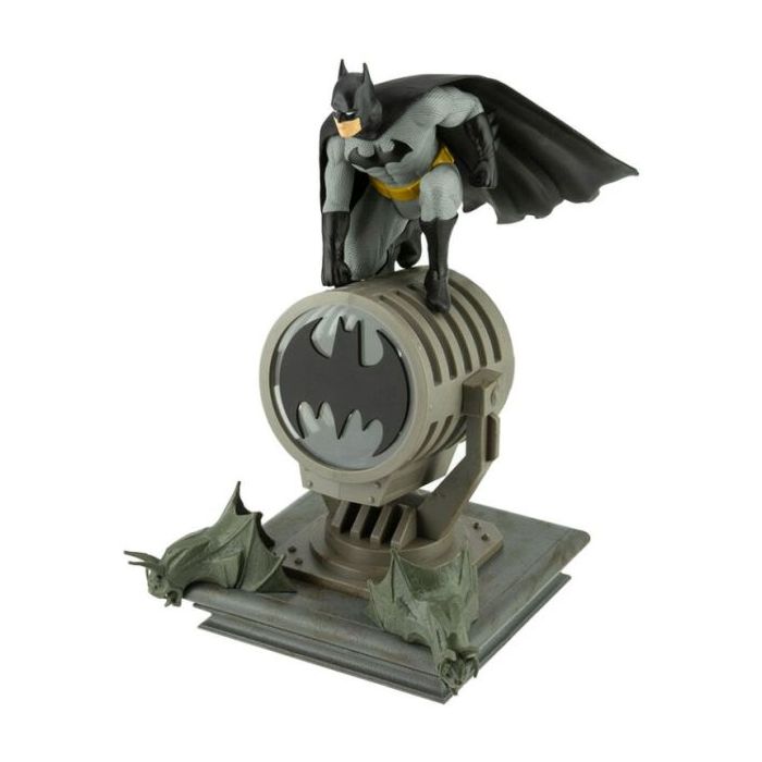 Dit gedetailleerde beeldje van Batman gezeten op het Bat-signaal is ongeveer 27cm (11") hoog. Als het donker is, zet je hem aan om je kamer te verlichten met wit LED licht. Werkt op USB (USB-kabel inbegrepen).