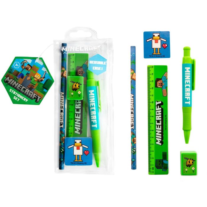 Deze leuke 5 delige Minecraft schrijfset bevat alles wat je nodig hebt voor school.