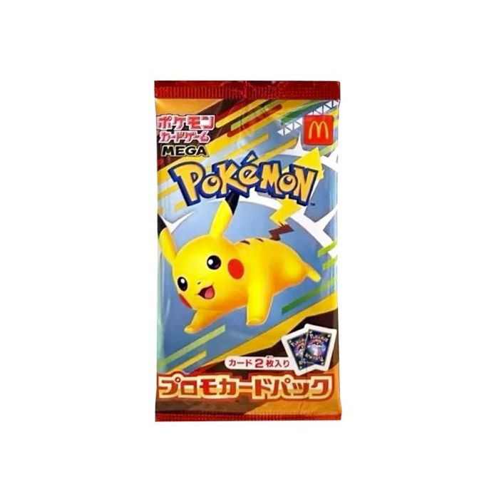 De mega populaire McDonald's Pikachu 2025 Promo Pack (M-P 020). Naast de Pikachu promokaart "Pikachu (M-P 020)", tref je hier ook nog een normale pokemon kaart in aan. Dit kunnen 5 verschillende kaarten zijn. Zie afbeeldingen voor de potentiele kaarten.