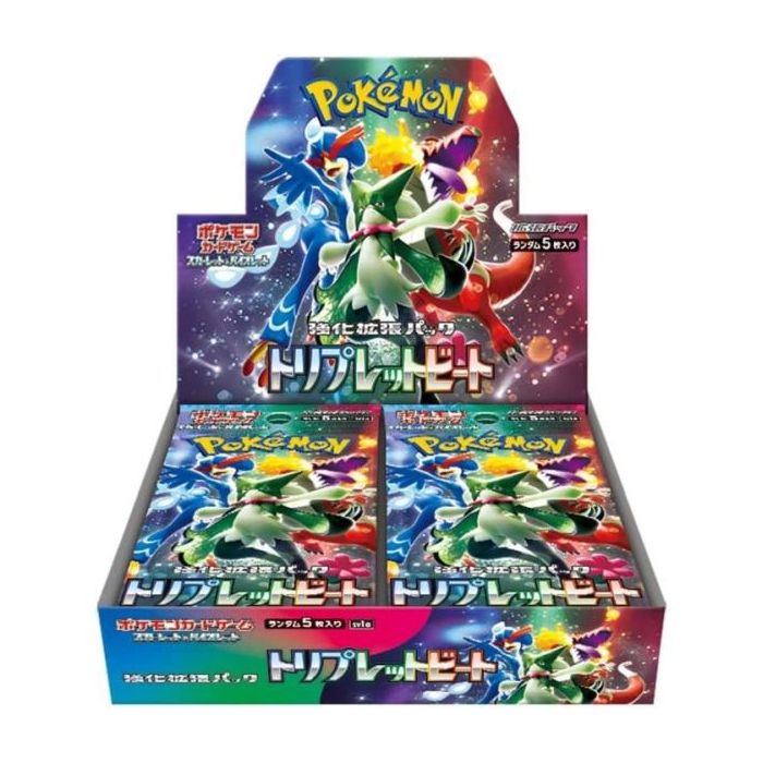 <b><span style="font-size:18px;">Pokemon TCG Scarlet & Violet Triplet Beat: Booster Box</span></b><br><hr id="null">Bevat 30 boosters met daarin 5 kaarten per box.<br><br>De 2e nieuwe set van de Scarlet en Violet Pokemon Trading Card Game AKA Triplet Beat.<br><br>Met een nieuwe line up van Sprigatito, Fuecoco en Quaxly en hun ex evoluties brengt deze set de kracht en zet echt de nieuwe standaard voor het meta spel met nieuwe kaarten zoals de Luminous Energy.<br><br>Met nieuwe speciale kaart zeldzaamheden zoals de extra AR, SAR en SR kaarten, weer een mooie en hoogwaardige set met geweldige achtervolgingskaarten voor spelers en verzamelaars.