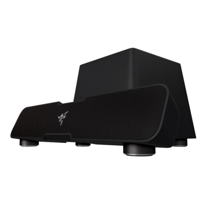 De Razer Leviathan 5.1-Kanaals Surround Sound Bar past eenvoudig onder je desktopmonitor of de consoleopstelling in de woonkamer.