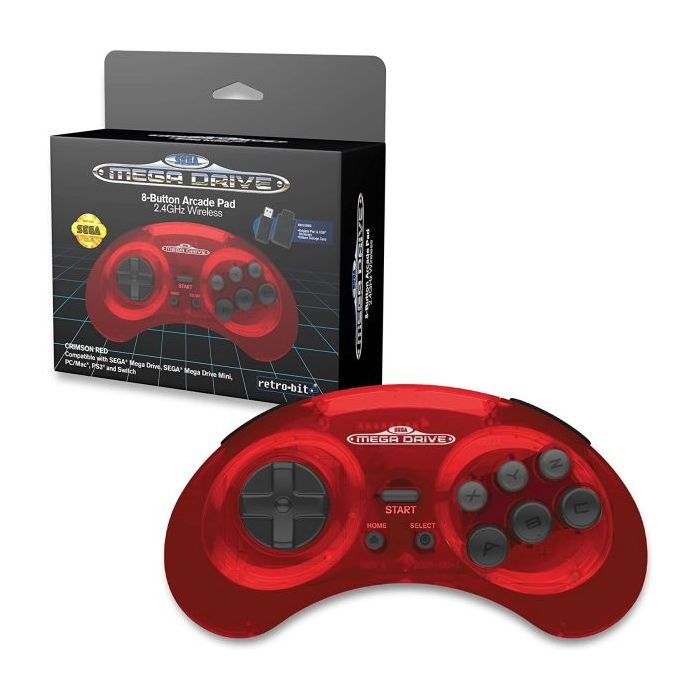 Retro-Bit SEGA Mega Drive 2.4G Wireless 8 Button Arcade Pad: Crimson Red