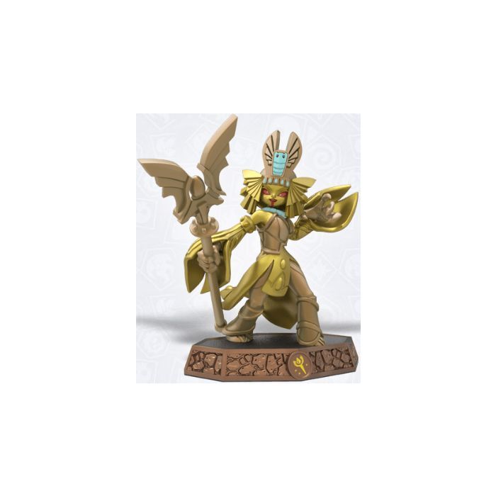 A powerful sorceress made entirely of gold and riches beyond your wildest imagination. She'd trade her entire fortune for just a little more. But why trade when you can steal? So that's what she did. She stole, and stole, and stole! No matter how much she took though, it was never enough. Through evil sorcery, she even learned how to turn people and objects into solid gold! Yet STILL, that just wasn't enough. The idea that there was any amount of treasure out in Skylands that didn't belong to her was infuriating, so she set out on a quest to take every last cent of it. But she couldn't do it alone. It was then that she formed the Doom Raiders - the most notorious group of Villains ever assembled - declaring herself their unquestioned leader. Together, the Doom Raiders terrorized Skylands until Master Eon and the Trap Masters put a stop to them, locking all them up inside Cloudcracker Prison. Eon then gave these Villains a choice - either remain imprisoned or become Skylander Senseis, teaching a new generation of Imaginators their formidable battle skills as well as how to stay clear of a life of crime. They accepted the deal but first had to prove themselves by re-arranging all the books in the Academy's library, a task which took almost two years, and much to the Queen's dismay, had nothing to do with gold. But this gave her an opportunity to rethink her insatiable desire for treasure and that maybe there is more to life than stealing. She now trains the Sorcerer Class and considers herself mostly reformed.