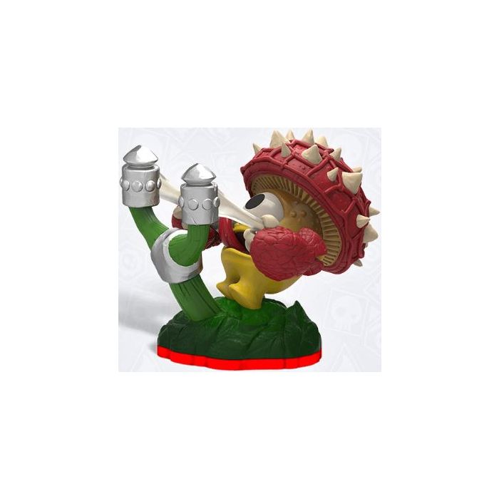 Sure Shot ShroomboomShroomboom werd helaas geboren in een pizza-ingrediententuin die in bezit was van Kaos. Al opgroeiend tussen zijn mede paddenstoelen"," wist hij dat het slechts een kwestie van tijd was voor een nachtelijke schranspartij hen de kop ging kosten. Van een twijgje en een draad uit een spinnenweb maakte Shroomboom een katapult. Een voor een lanceerde hij zijn vrienden over het tuinhekje voor hij zichzelf afschoot om zich bij zijn vrienden te voegen. Hij leidde ze daarna naar de rand van het eiland en sprong de vrijheid tegemoet en zweefde met zijn paddenstoelenhoed op een fijn briesje. Als lid van de Skylanders draait Shroomboom zijn hand nog steeds niet om voor dappere daden... maar op pizzadagen is hij soms onvindbaar.