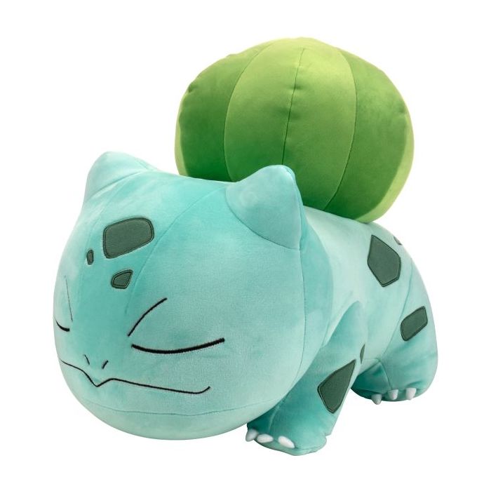 Tijd om te knuffelen met deze enorme slapende Bulbasaur Plush! Deze grote Bulbasaur heeft een super zachte buitenkant en een pluizige vulling waardoor hij ideaal is om mee te spelen, slapen, of knuffelen! Met zijn speciale slaaphouding, is deze Bulbasaur pluche uniek in zijn soort! Het is de perfecte aanvulling op je Pokémon team of bestaande collectie van pluche vrienden!
