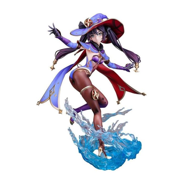 From worldwide hit "Genshin Impact" comes a 1/7th scale figure of the Great Astrologist Mona! She's approaching from the cloak of her Illusory Torrent, her unique fighting style has come to life in figure form. Mona's flowing pose, the varying textures of her unique outfit, her star-themed accessories and the water effect at her feet have all been carefully recreated in faithful detail! Be sure to add her to your collection today!